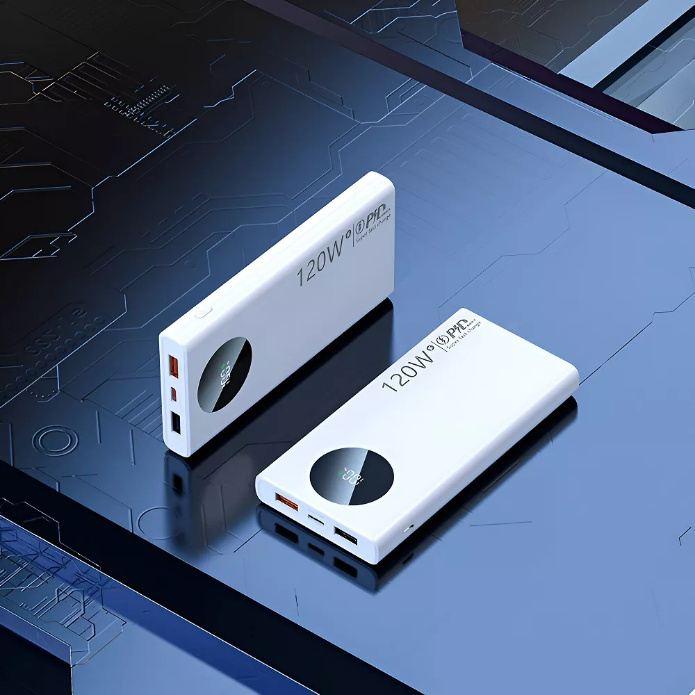 Experience the ultimate convenience of portable power with this high-capacity 120W fast-charging power bank. Whether you’re on a long journey, working remotely, or just preparing for unexpected emergencies, this lightweight battery pack delivers reliable and efficient charging for all your devices. With a sleek design and real-time digital display, it’s the perfect companion for your tech essentials.