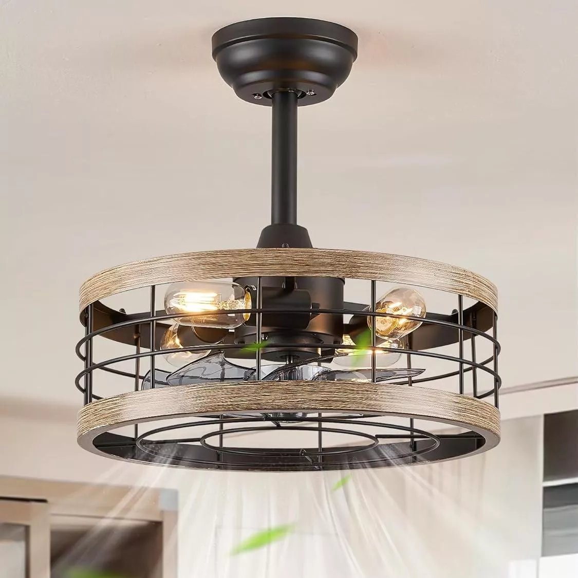 Bring functional beauty into your space with this 16.5-inch black caged ceiling fan with light. Designed with a sleek metal frame and modern farmhouse flair, this compact fandelier is perfect for bedrooms, kitchens, living rooms, or even covered outdoor areas. Its cage design is both visually striking and space-saving, offering powerful airflow and ambient lighting in one stylish fixture.