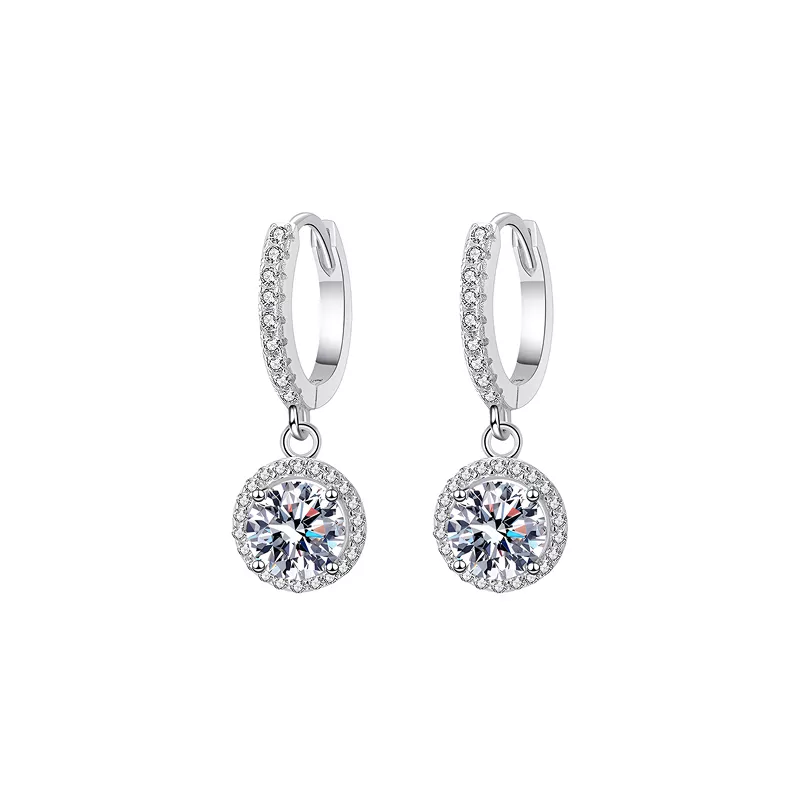 18K White Gold Drop Earrings with 1 Carat Moissanite for Women