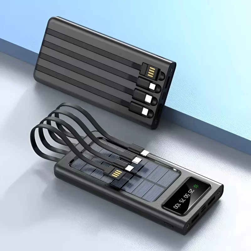 200000mAh Solar Power Bank with Built-in Cables and Fast Charging for Apple Devices