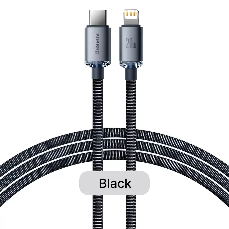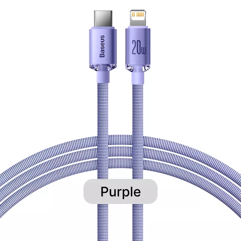 This USB Type-C to Lightning cable is packed with features that make charging and data transfer quicker, safer, and more efficient. The crystal shine series provides a sleek, stylish design, and the upgraded connectors ensure secure, stable connections every time. It also offers excellent durability with reinforced protection, so you can count on it to withstand everyday wear and tear. With its smart temperature control and thickened copper cores, this cable ensures your devices stay safe while charging at high speeds.