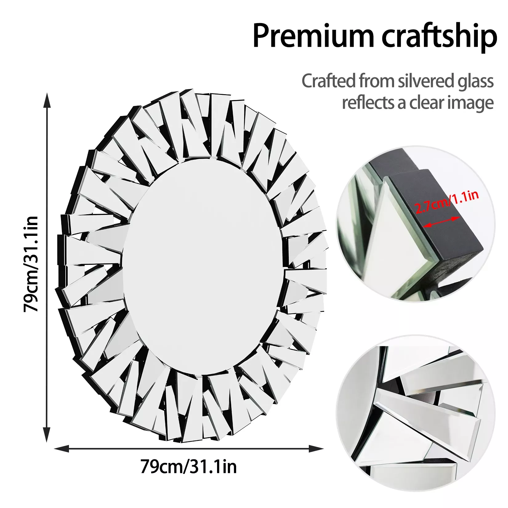 Turn any blank wall into a statement piece with this 32″ Round Sunburst Wall Mirror. Featuring a stunning sunburst design and a sleek silver finish, this mirror blends modern style with timeless charm. Whether you’re adding a touch of glamour to your living room, brightening up a hallway, or enhancing your bedroom ambiance, this mirror brings beauty, light, and dimension to your space.