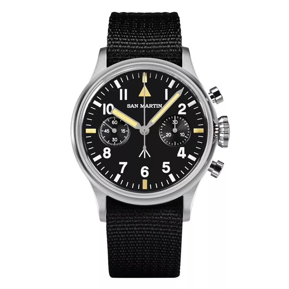 This stylish 38.5mm men’s chronograph pilot watch is the perfect blend of functionality and sophistication. Designed for those who appreciate fine craftsmanship and military-inspired aesthetics, this timepiece is built to perform. With its manual mechanical movement and precise chronograph features, it’s more than just a watch – it’s a statement of elegance and durability. Whether you’re a pilot, an adventurer, or simply someone who values great design, this timepiece is made for you.