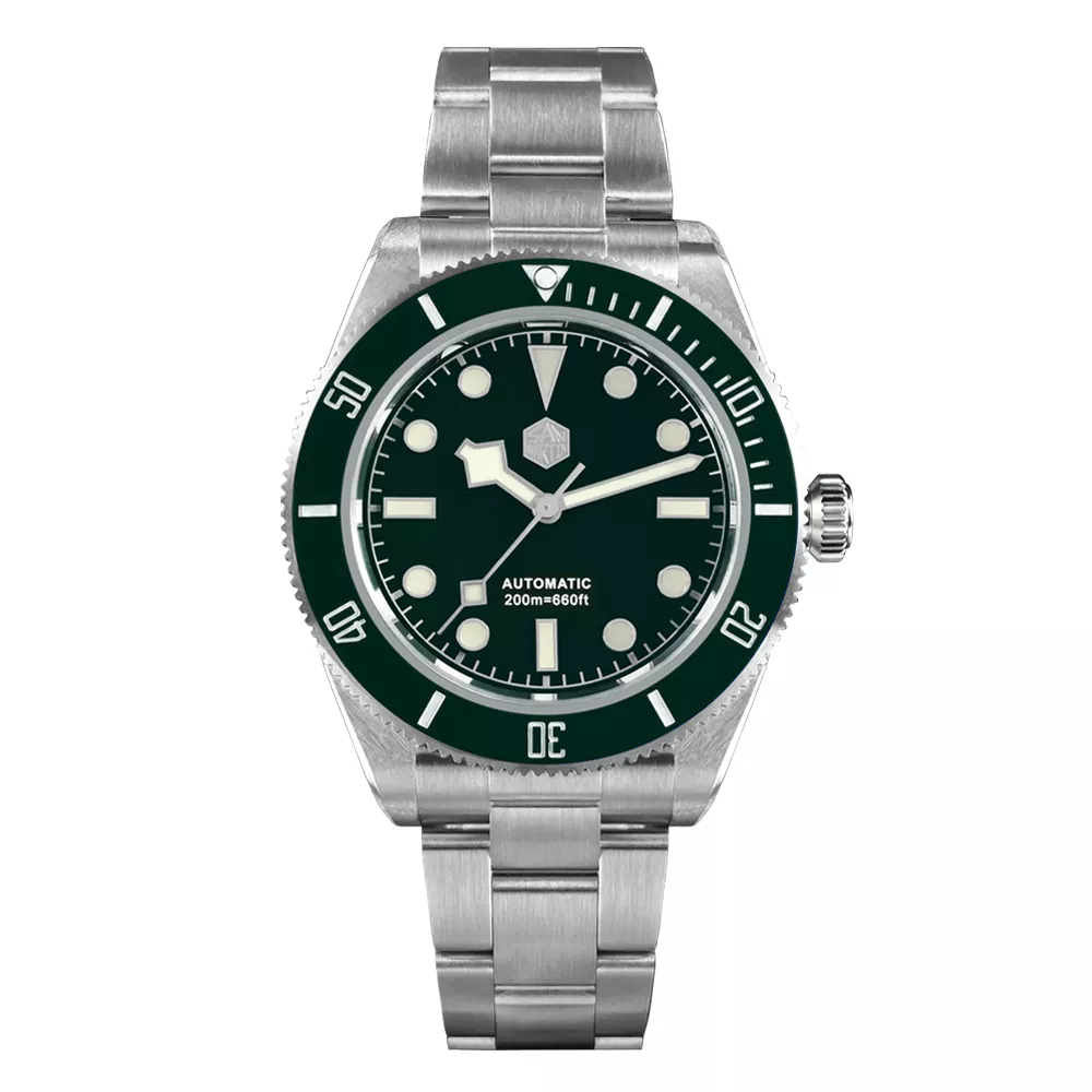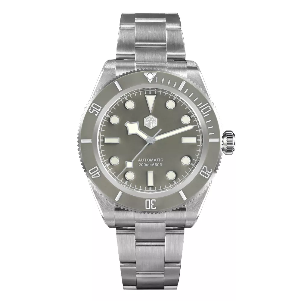 With a variety of striking matte dial options—black, blue, green, brown, grey, and dark green—each version delivers a unique personality, enhanced by a luminous display that glows boldly in the dark. The snowflake-style hands and markers feature BGW-9 blue light and C3 green light luminous effects, ensuring visibility in any environment. Built with a ceramic bezel and a screw-down crown, this diver’s watch is water-resistant up to 660 feet (200 meters), making it an ideal companion for water sports, diving, and everyday wear.