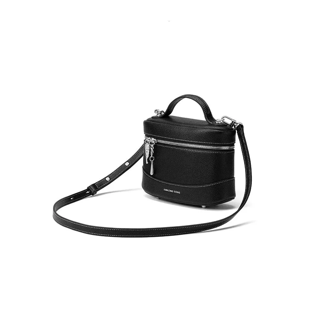 Made from premium split leather, the exterior offers a smooth and polished finish that’s both eye-catching and easy to maintain. Inside, you’ll find a soft synthetic leather lining that protects your essentials while giving the bag a refined touch. Compact yet spacious enough for your phone, cards, keys, and small beauty items, it’s your go-to when you want to travel light without sacrificing style.