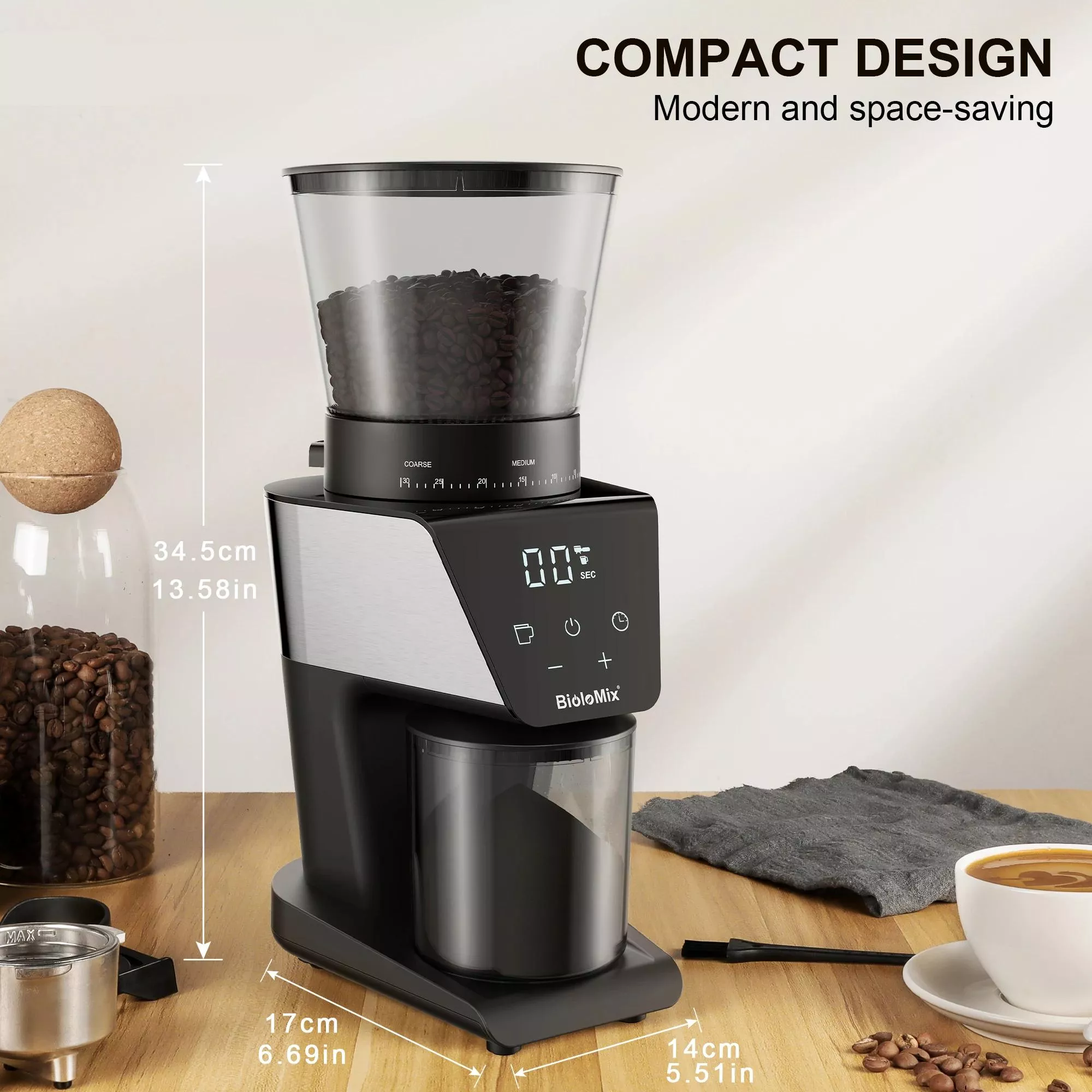 Automatic Conical Burr Coffee Grinder with 30 Settings and LCD Timer