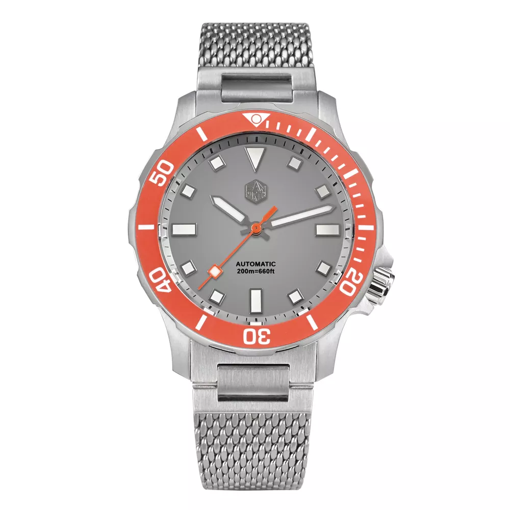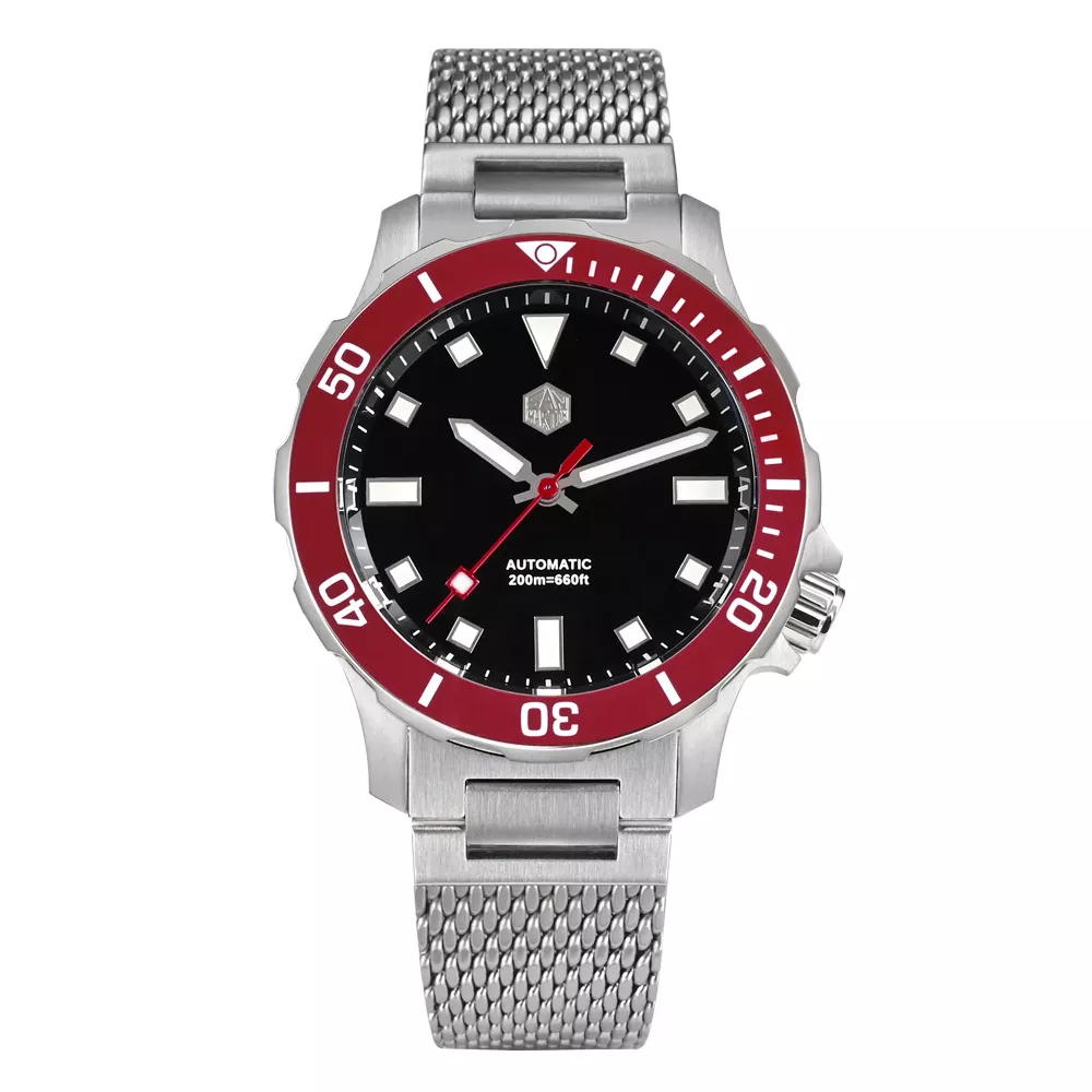 Automatic Diver Watch with Milanese Bracelet, Ceramic Bezel, and 200m Water Resistance