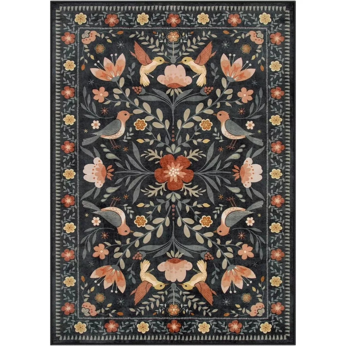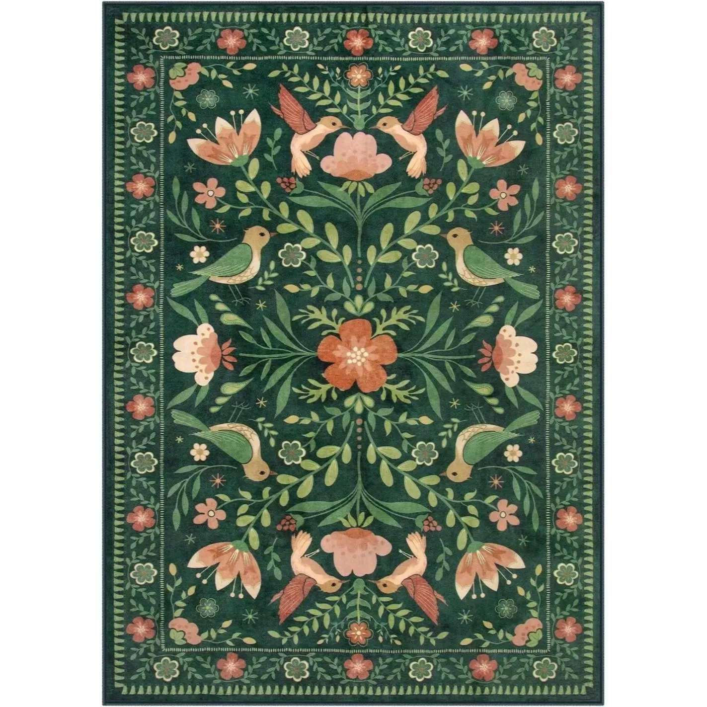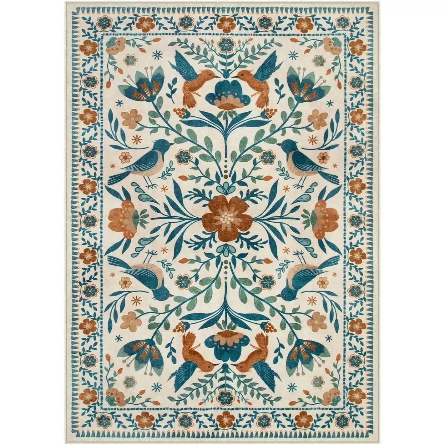 Birds Floral Washable Foldable Cashmere Rug for Living Room & Bedroom