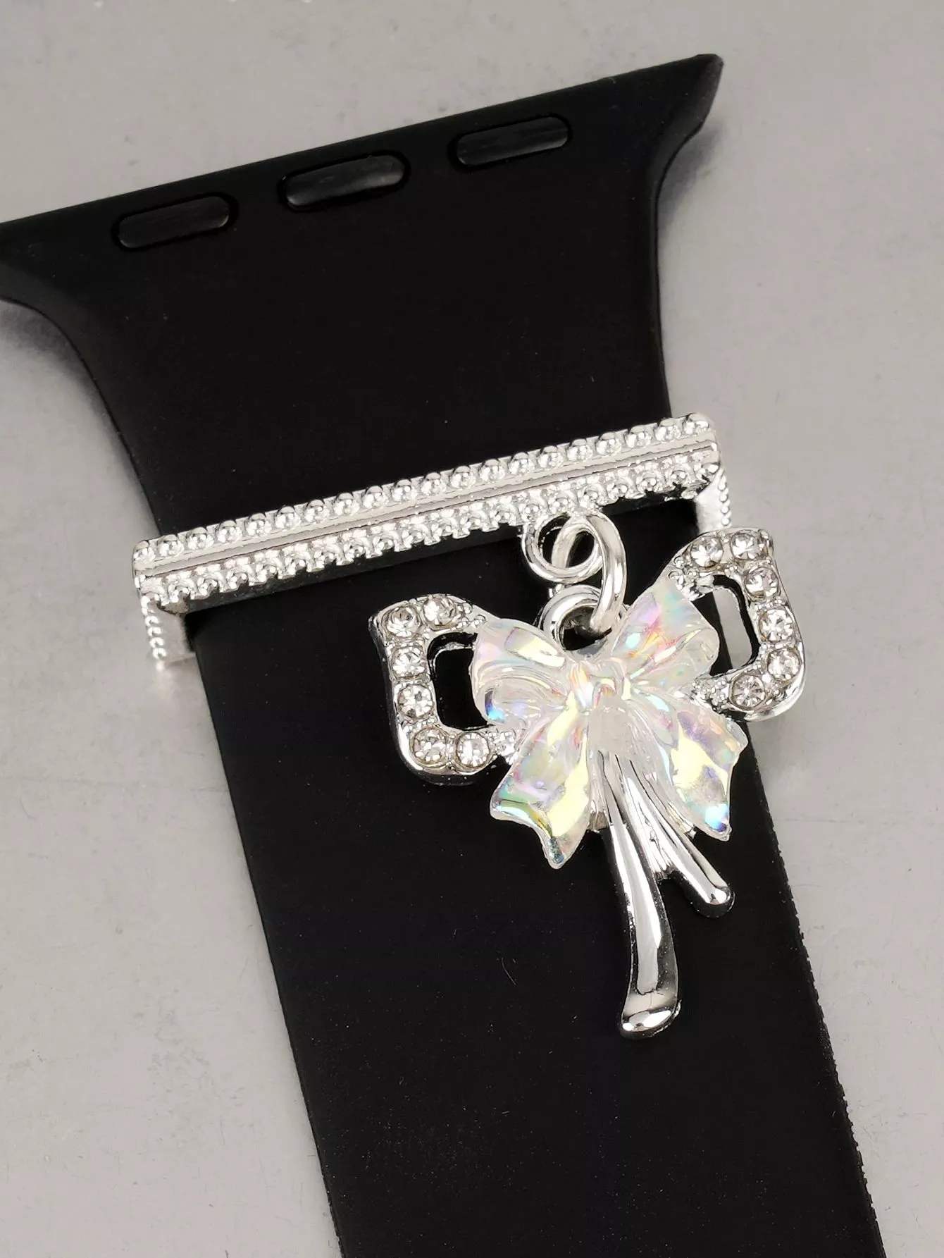 Enhance your Apple Watch with the Charming Bow Watchband Decorative Loop. This stylish and versatile accessory is designed to bring a playful yet refined look to your watch, making it perfect for any occasion. Crafted to fit seamlessly onto Apple Watch silicone bands, it’s the ultimate add-on for personalizing your tech with a hint of sophistication.