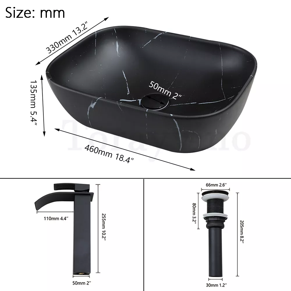 Elevate your bathroom style with this beautifully designed rectangular ceramic vessel sink, complemented by a black waterfall faucet and pop-up drain set. Perfect for adding a touch of modern sophistication to your space, this bathroom vanity sink combines luxury with practicality. The smooth ceramic finish and elegant shape make it the ideal addition to both contemporary and traditional bathrooms, offering a refined look that stands the test of time.