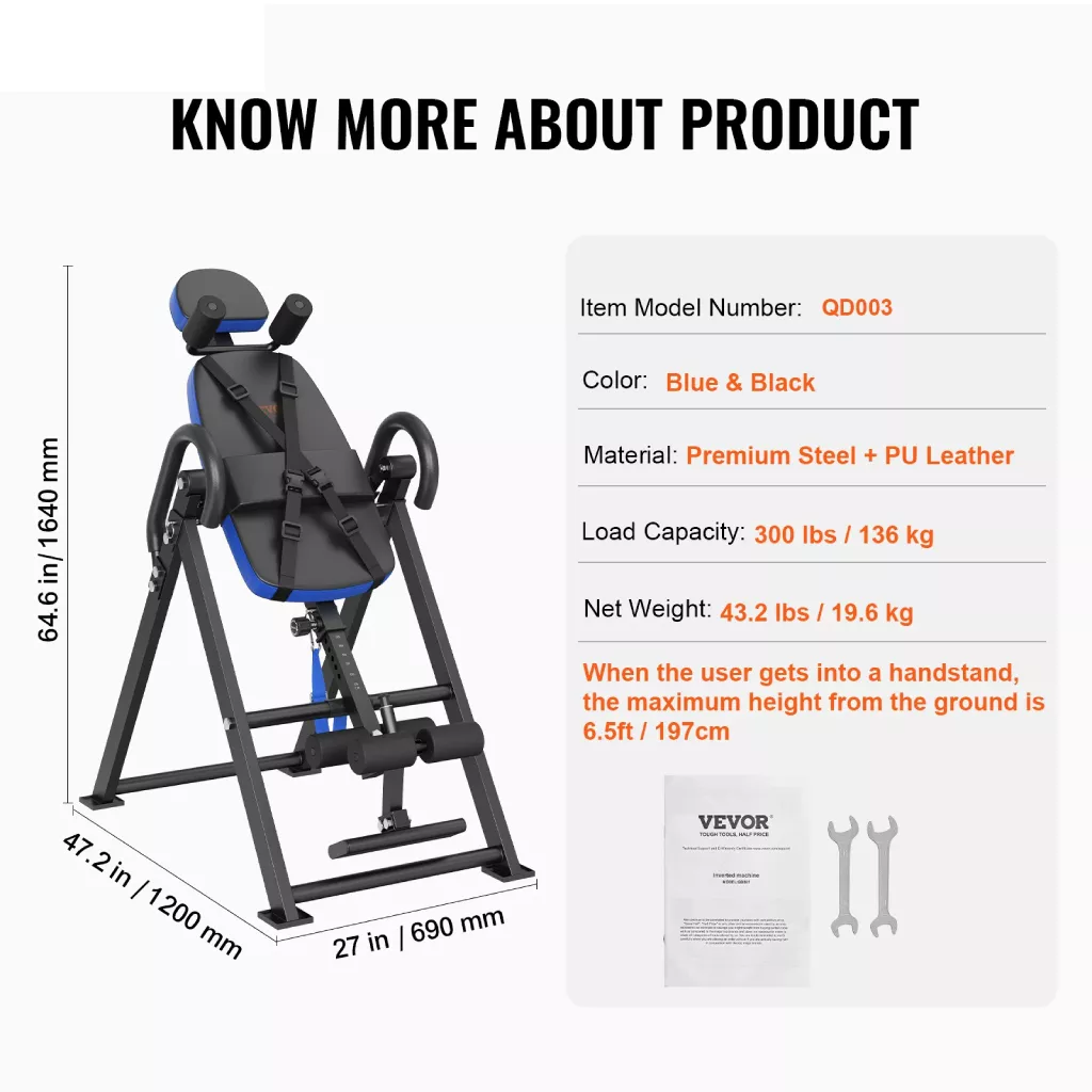 • Durable Construction: The robust steel frame and non-slip handrails provide extra support during your inversion sessions. The ergonomic ankle lock and enlarged footpads keep you stable and secure.