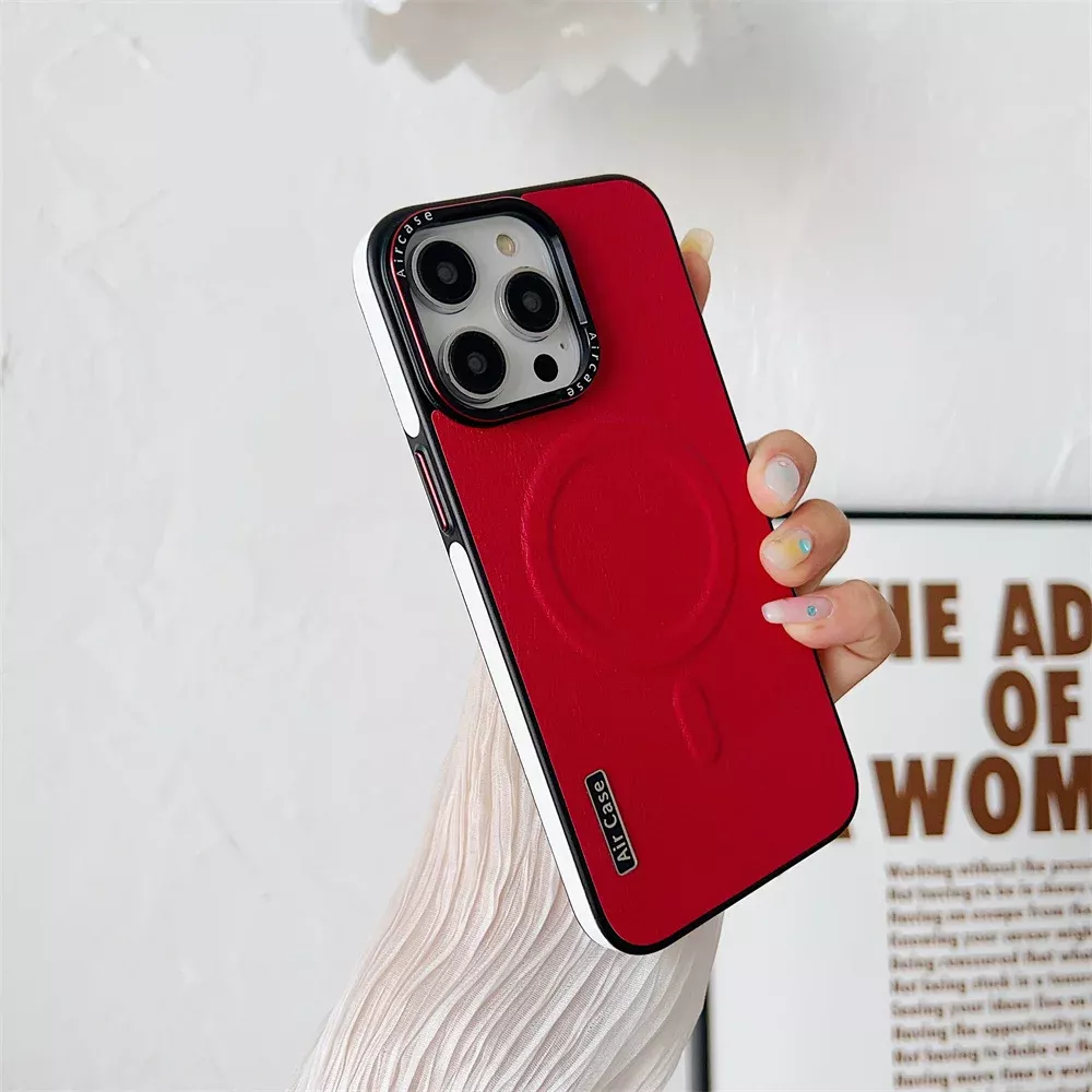 Enhance the look and durability of your Apple iPhone with the Luxury Leather MagSafe Case. Designed for those who appreciate style and practicality, this high-quality case offers superior protection with a touch of elegance. Featuring premium leather, MagSafe compatibility, and advanced shockproof technology, it keeps your device secure, stylish, and ready for wireless charging. Available in a variety of rich colors like black, green, purple, red, and more, this case effortlessly complements your personality and lifestyle.
