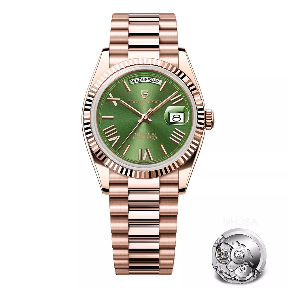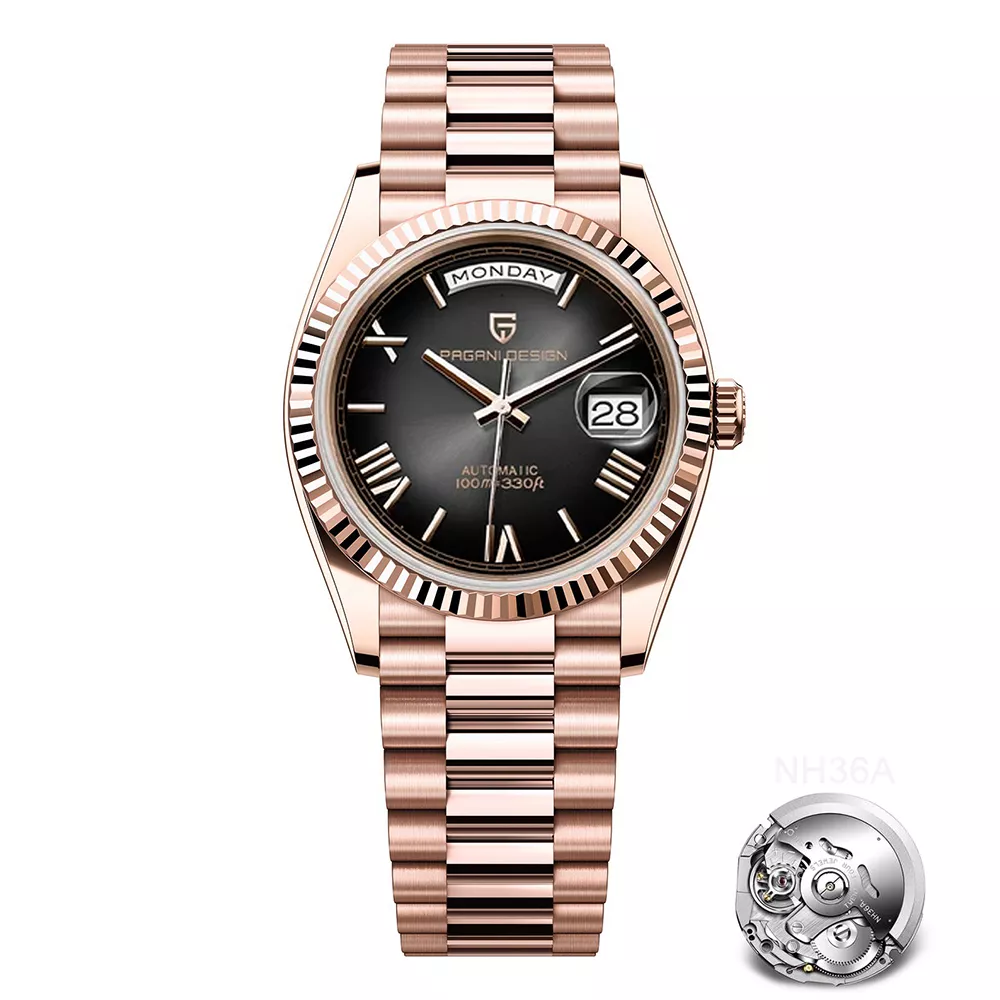 Turn heads and command attention with this striking luxury automatic watch in rose gold. Built for the modern man who appreciates detail and durability, this mechanical timepiece combines sophisticated aesthetics with high-performance functionality. With a sleek 40mm case, scratch-resistant sapphire crystal, and a reliable Japanese NH36A automatic movement, it’s more than just a watch—it’s a statement.