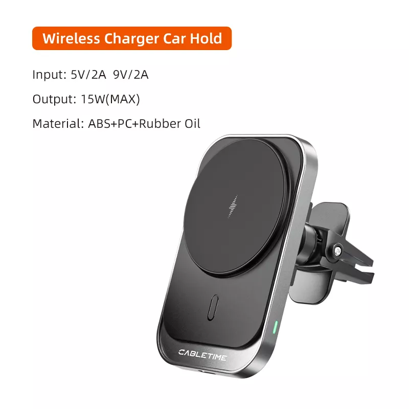 Take your daily drives to the next level with our Magnetic Wireless Car Charger and Phone Holder, tailored for Apple products like iPhones and AirPods. Experience a blend of functionality and style with this 2-in-1 solution that combines fast charging with a secure phone mount. Say goodbye to tangled cables and hello to effortless power on the go.