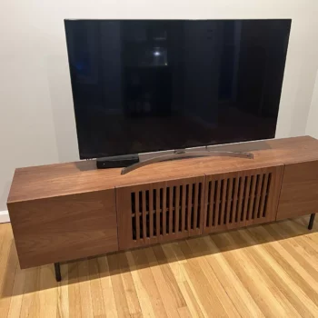 I recently upgraded my living space with the Modern Chic 2M Lowboard TV Stand, and it's genuinely transformed the area. From the moment I set my eyes on it, the sleek, modern design caught my attention, perfectly encapsulating what I envision modern elegance to be. The quality of this piece is immediately noticeable, providing a sturdy yet stylish foundation for my entertainment setup. The contemporary feel it brings into the room is both refreshing and welcoming, offering a perfect blend of style and functionality. Its durability is a testament to the thoughtful craftsmanship, ensuring that it will remain a centerpiece in my home for years to come. The easy-to-clean surface is an added bonus, making maintenance a breeze. Its spacious dimensions effortlessly accommodate all my gadgets, from game consoles to streaming devices, without clutter. 😊