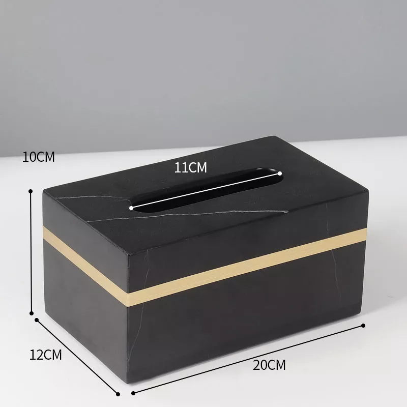 Each tissue box is made from natural marble, meaning every piece features its own unique veining and texture—no two are exactly alike. The golden stroke detail adds a soft, luxurious glow, enhancing its decorative appeal without overpowering your space. It’s a timeless investment in aesthetics and quality, crafted to impress without shouting for attention.