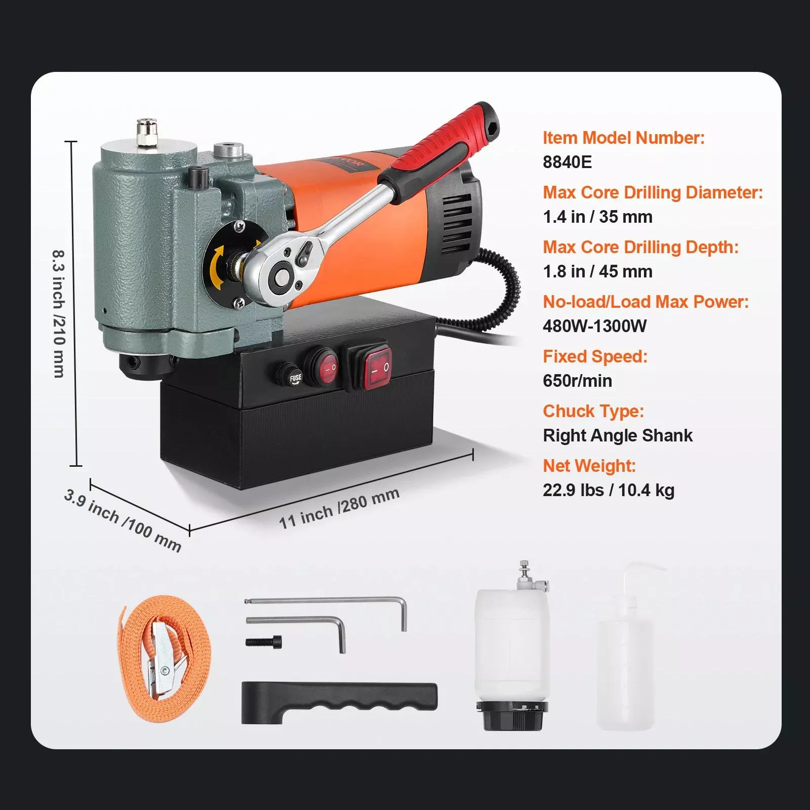 • High-Performance Drilling: With a maximum core drilling diameter of 1.4 inches (35mm) and a drilling depth of 1.8 inches (45mm), this drill offers efficient and precise drilling for various metalworking tasks.