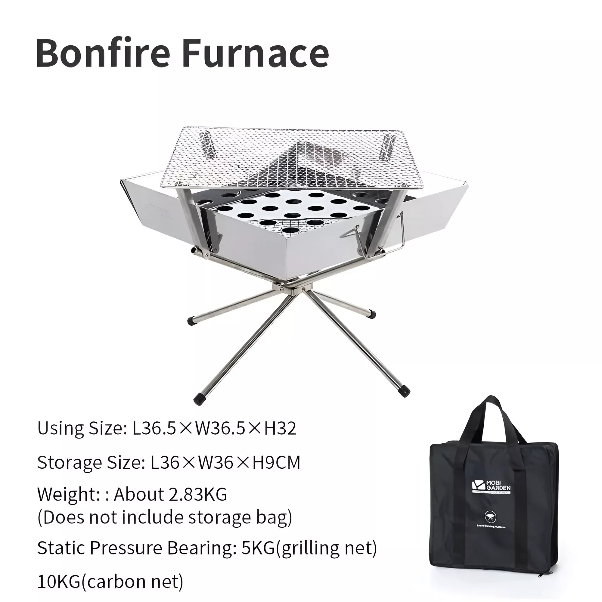 Portable Stainless Steel Foldable Campfire Grill & Wood Burning Stove