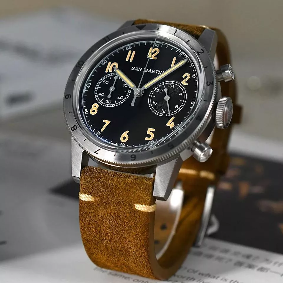 The fusion of retro aviation aesthetics with modern quartz reliability sets this watch apart. The SLN C3 green lume glows with vintage character, and the panda dial evokes the golden age of chronograph timepieces. Every detail—from the engraved crown to the brushed caseback—speaks to quality craftsmanship and thoughtful design.