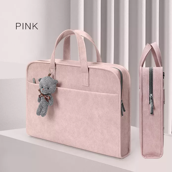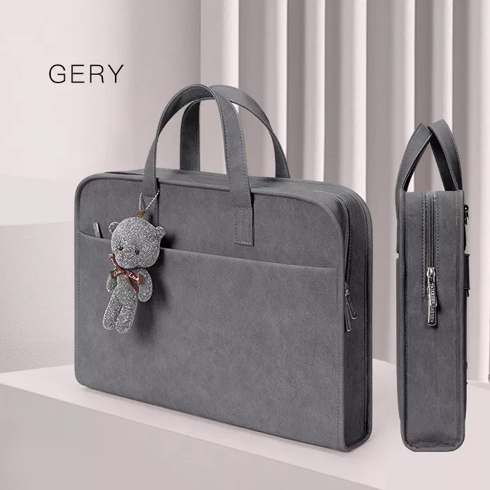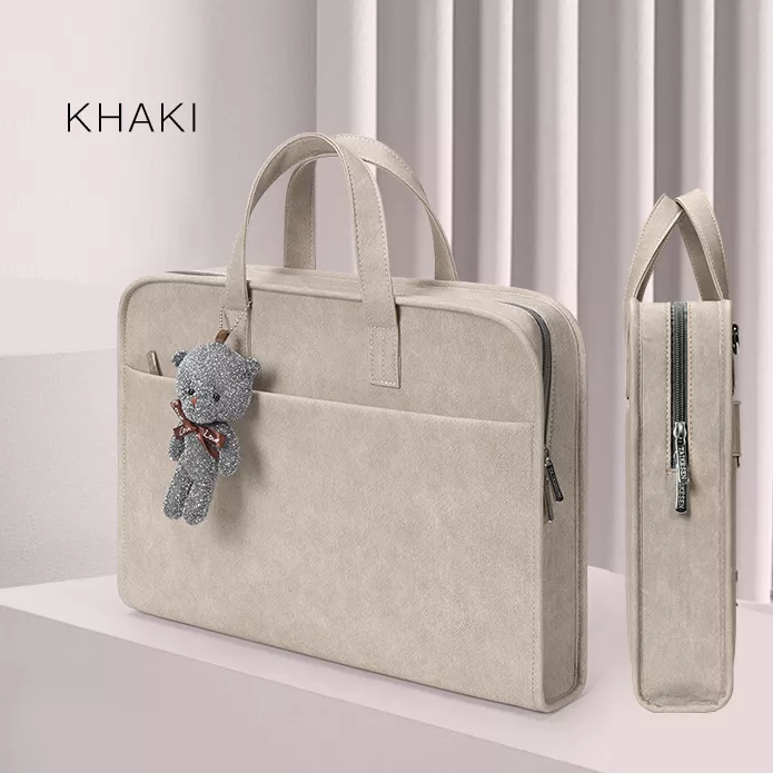 This laptop bag stands out with its blend of premium PU material and multi-functional design. Unlike basic sleeves, it offers both a shoulder strap and handles, giving you the freedom to carry it your way. The solid pattern and minimalist design add a touch of sophistication, making it the perfect accessory for both casual and professional settings.