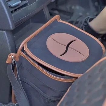 Crafted from 600D Oxford fabric and eco-leather, this trash can is sturdy and wear-resistant. The lid closes tightly with a magnetic button, while the trash hole is made of soft silicone, safe for children.