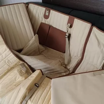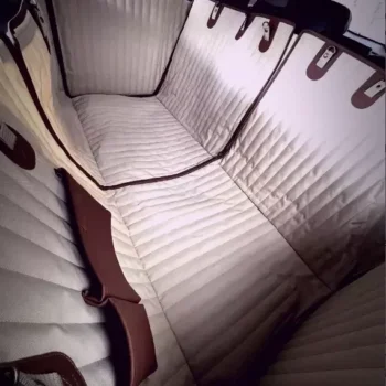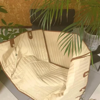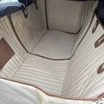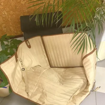 This car hammock has made traveling with my pet so much easier. Its chic appearance featuring beige and brown colors adds a touch of class to the vehicle, making it more than just a practical accessory.