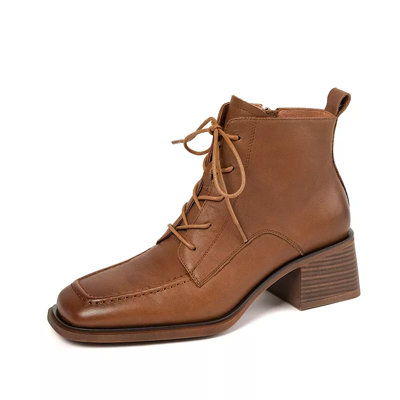 Women’s Genuine Leather Lace-Up Ankle Boots – Handmade Elegant Retro Booties
